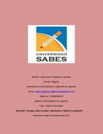 Actividad 1.Ensayo ¿Qué es mejor: administrar o liderar un proyecto? .