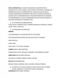 DIETA LIPOPROTEICA: SE BASA EN CONSUMIR LA MAYOR PARTE DE ALIMENTOS EN LA DIETA DIARIA SOLO LIPIDOS Y PROTEINAS, EVITANDO LOS PRIMEROS 28 DIAS LOS CARBOHIDRATOS; DESPUES DE LOS 28 DIAS SE PUEDEN INCORPORAR LENTAMENTE PERO NO EN LA MISMA CANTIDAD NI CALIDAD QUE SE CONSUMIAN ANTES, PARA MANTENIMIENTO SE DEBERAN IR INCORPORANDO A LA DIETA CARBOHIDRATOS QUE NO SEAN HARINAS NI AZUCARES REFINADAS, DE MANERA LENTA.