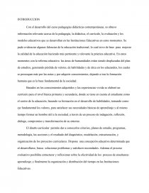 Con el desarrollo del curso pedagogías didácticas contemporáneas, so obtuvo información relevante acerca de la pedagogía, la didáctica, el currículo, la evaluación y los modelos educativos que se desarrollan en las Instituciones Educativas en estos momentos. Se pudo evidenciar algunas falencias de la educación tradicional, lo cual sirve de base para mejorar la calidad de la educación haciendo más pertinente y relevante la práctica educativa. En estos momentos con la reforma educativa las áreas de humanidades están siendo desplazadas del plan de estudios, generando pérdida de valores, de habilidades y de ética en los educandos, los cuales se preocupan más por las notas y por adquirir conocimientos, dejando a tras la formación humana que es la base fundamental de la sociedad.