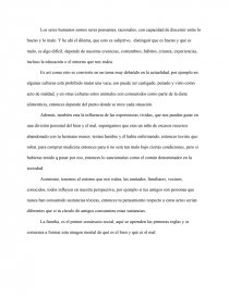 Los seres humanos somos seres pensantes, racionales, con capacidad de discernir entre lo bueno y lo malo. Y he ahí el dilema, que esto es subjetivo, distinguir que es bueno y qué es malo, es algo difícil, depende de nuestras creencias, costumbres, hábitos, crianza, experiencias, incluso la educación o el entorno que nos rodea.