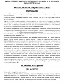 UNIIDAD 2: PERSPECTIVA TEORICA Y METODOLOGICA DEL CAMPO DE LO GRUPAL Y SU ENCUADRE PROFESIONAL
