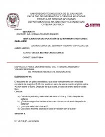 - Calcule la posición y velocidad del saco a 0.25s y 1.00s, después de soltarse