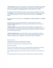 *Poder ejecutivo, cuya función es garantizar el cumplimiento de las leyes desarrolladas a través del poder legislativo y administradas de acuerdo al poder judicial y también es aquel que se encarga de las funciones políticas y administrativas de un Estado